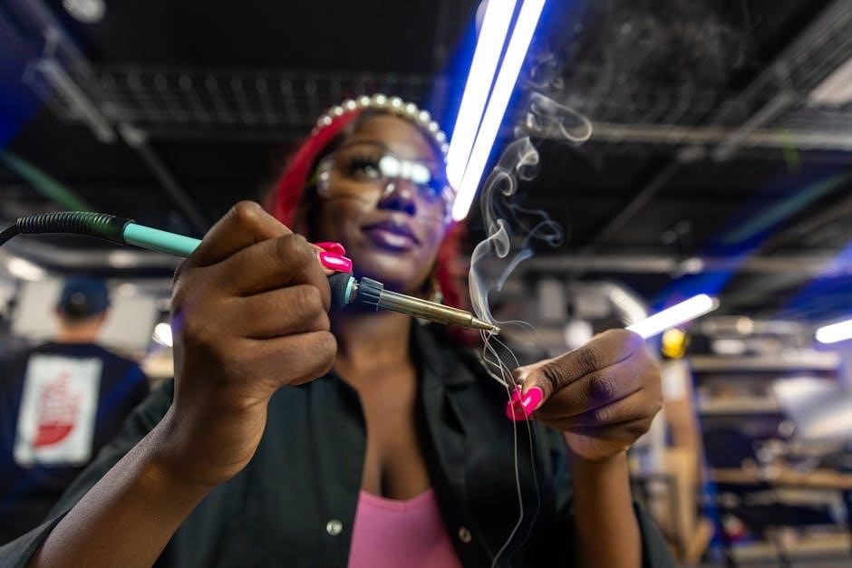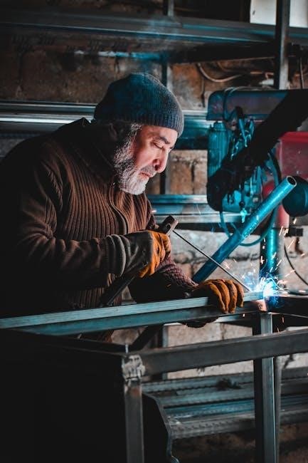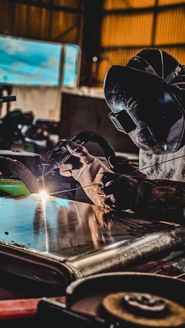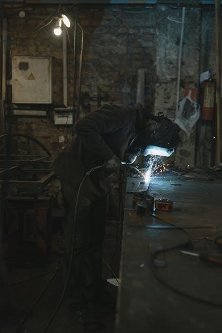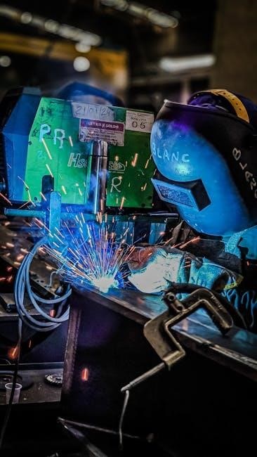PDF guides also stress the necessity of long-sleeved cotton shirts and pants without cuffs, minimizing exposed skin and preventing sparks from lodging within clothing. This protective attire forms a foundational layer of safety for the welder.